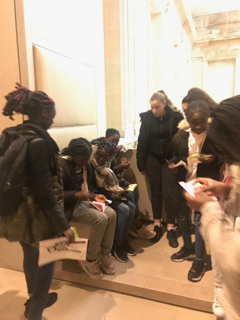 Munies d’un carnet de défi, elles se sont pris au jeu au fil des salles découvertes et n’ont pas hésité à échanger avec d’autres visiteurs sur les œuvres. Elles ont également eu l’occasion de prendre des photos (partagées ci-dessous). Nous avons fini cette sortie culturelle sur un jeu de questions-réponses.