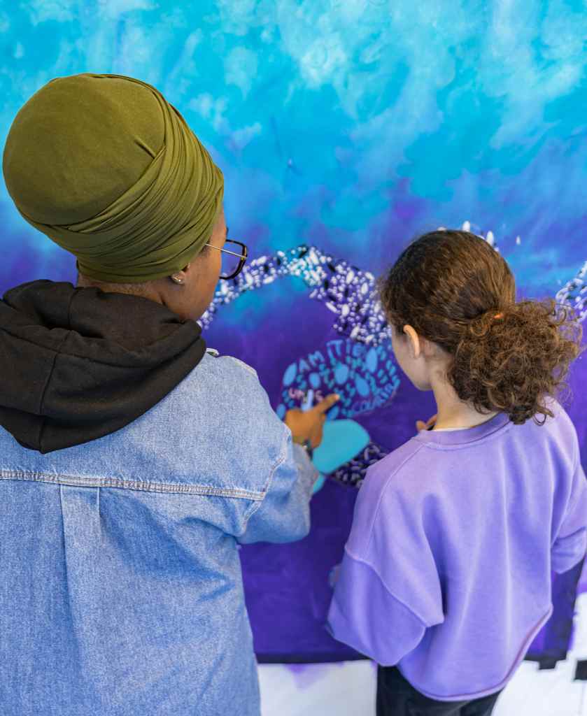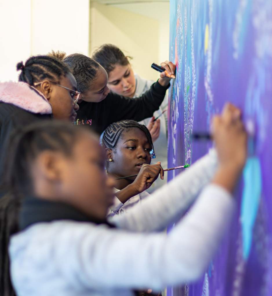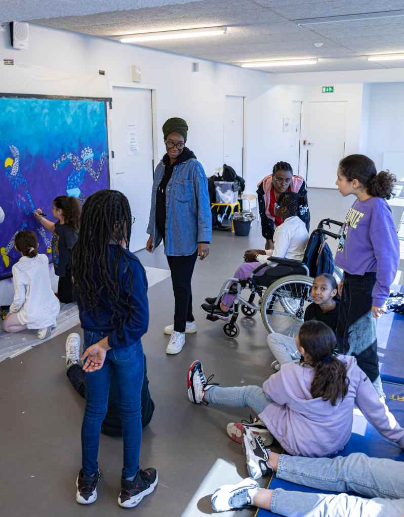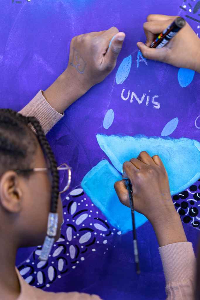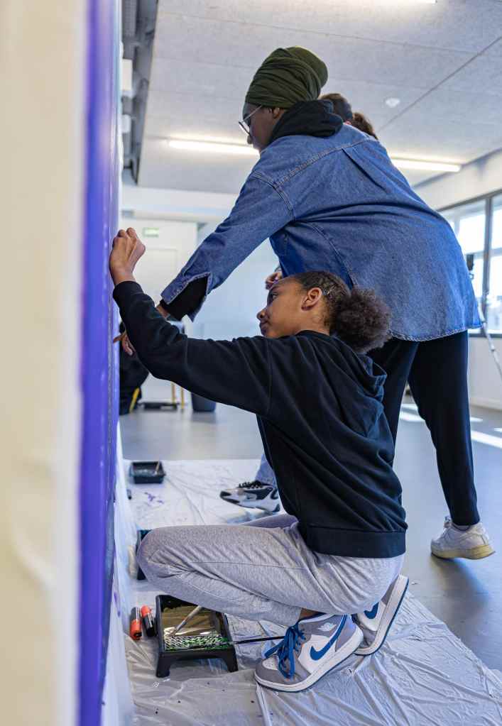 Mentorés par l’artiste Saly D. (@saly.d_art), artiste peintre plasticienne, les élèves ont passé deux jours à représenter l’impact que peut avoir le sport sur le développement et la cohésion sociale.