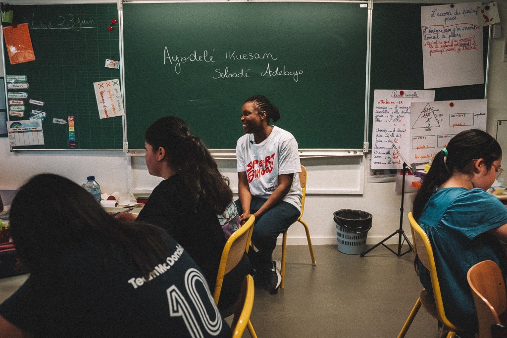 Le 23 juin dernier, Ayodele Ikuesan, vice championne d’Europe de relai 4×100 et adjointe à la mairie du 18ème arrondissement, nous a fait le plaisir de venir partager un moment avec nos jeunes et raconter son parcours sportif et scolaire.
