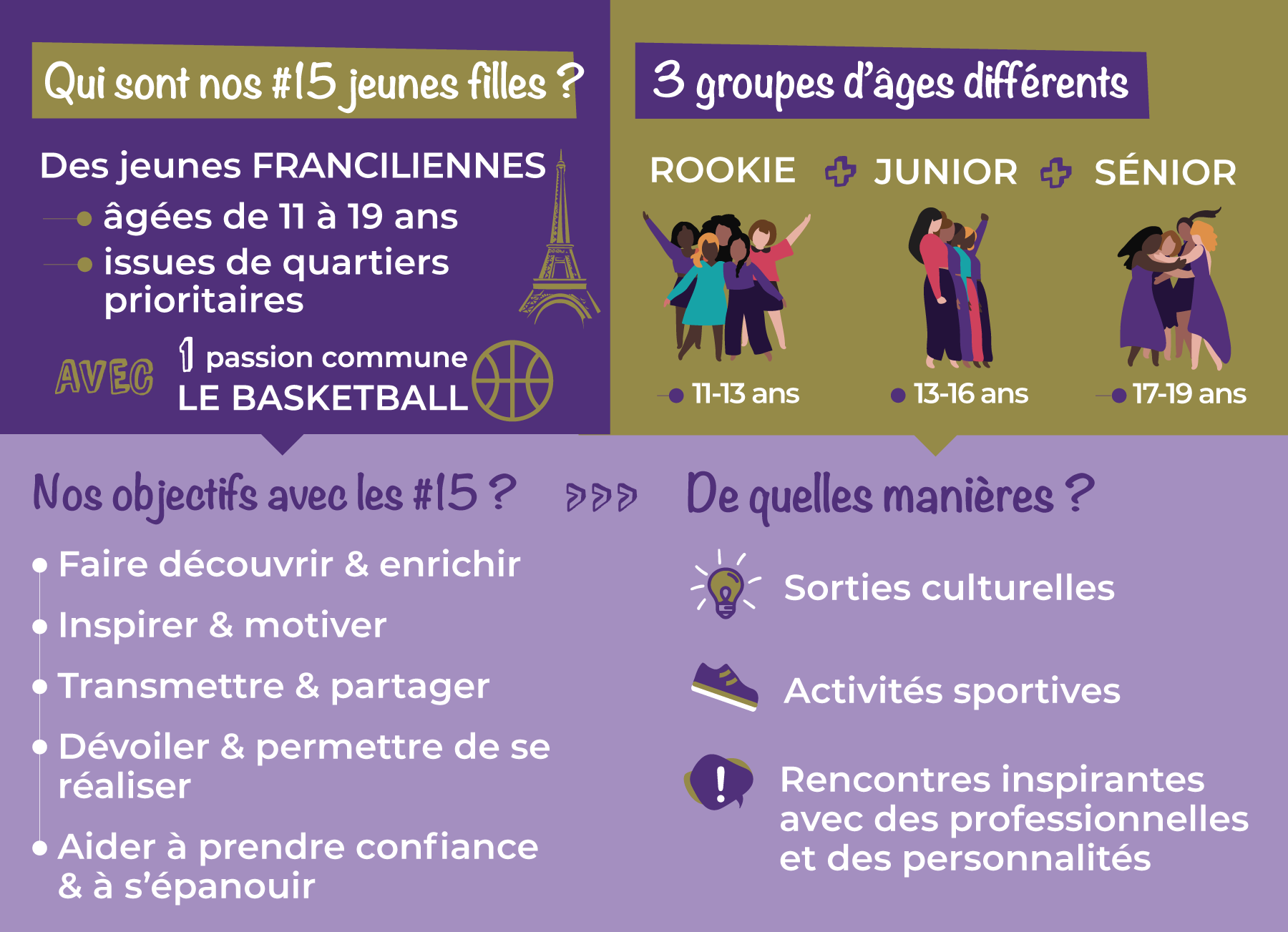 Les #15 Tout au long de l’année scolaire, nous accompagnons 15 filles au travers diverses actions. Au programme : partage et enrichissement autour de pratiques ou d’initiations sportives, de découvertes culturelles, et de rencontres inspirantes ! Sorties culturelles Activités sportives Rencontres et échanges Partager : Cliquer pour partager sur X(ouvre dans une nouvelle fenêtre) X Cliquez pour partager sur Facebook(ouvre dans une nouvelle fenêtre) Facebook J’aime chargement…